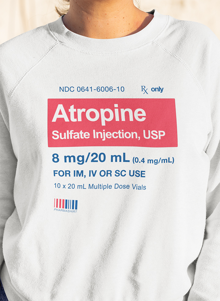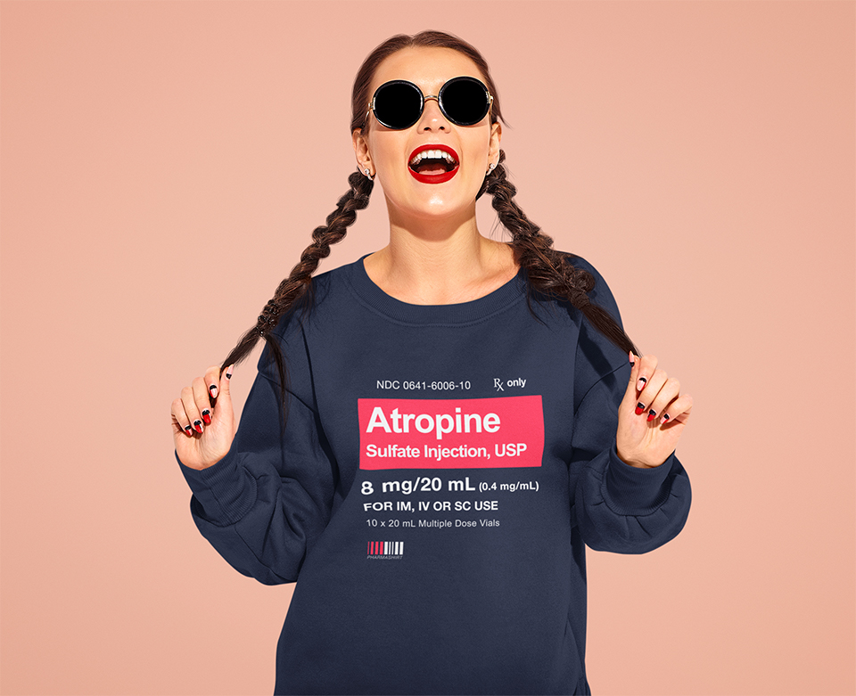 Questa felpa girocollo unisex, calda e morbida al tatto รจ ispirata ai farmaco “Atropina”. La stampa DTG (Direct-to-Garnment) di alta qualitร garantisce altissima tenuta nel tempo, saldando i colori nel tessuto cosรฌ da rimanere brillanti e duraturi anche dopo molti lavaggi in lavatrice. Ultima chicca: questo prodotto puรฒ essere personalizzato aggiungendo una scritta a piacere sulle spalle.