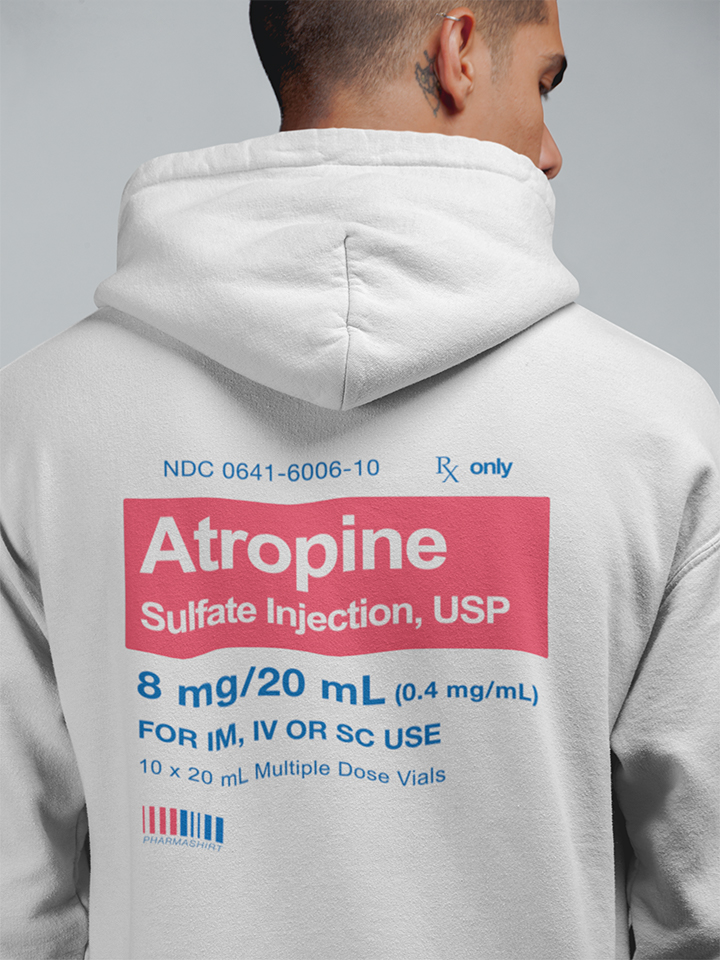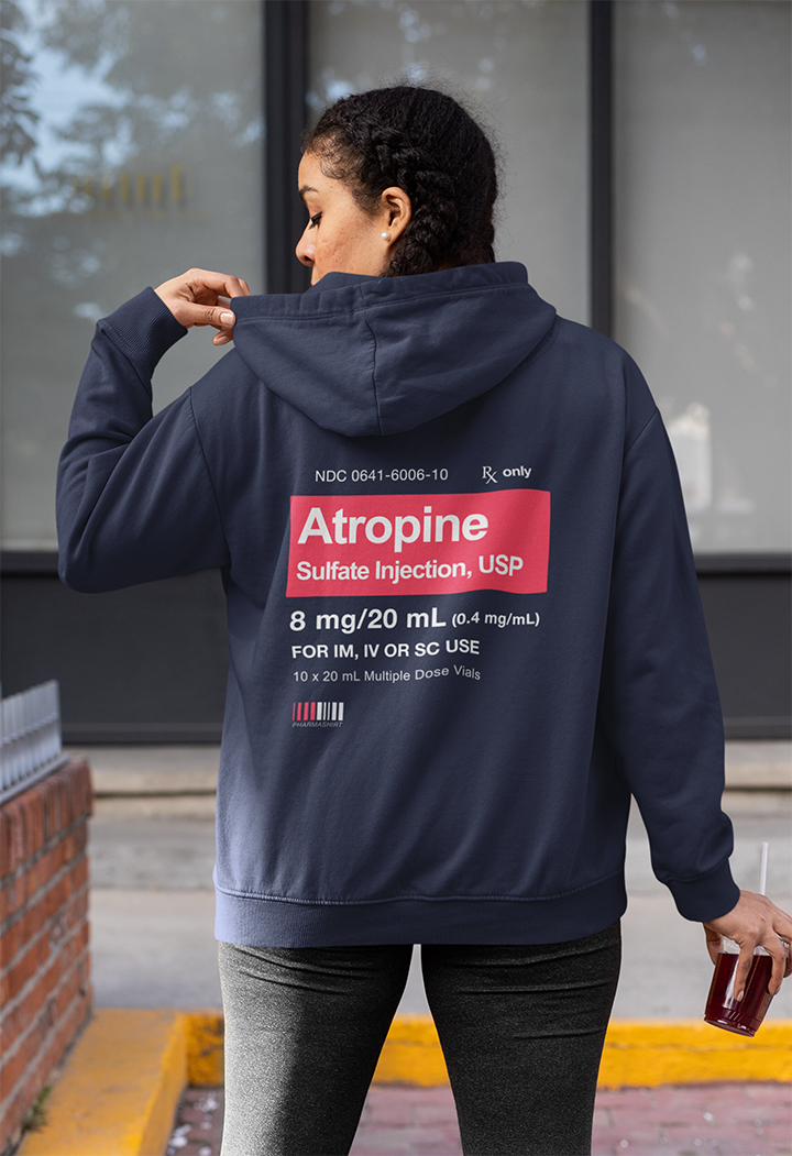 Questa hoodie unisex, con zip e cappuccio, calda e morbida al tatto è ispirata al farmaco “Atropina” distribuito dalla Bayern a inizio ‘900. La stampa è posta dorsalmente ed è di ottima qualità, i colori rimarranno brillanti e duraturi anche dopo molti lavaggi in lavatrice. Ultima chicca: puoi personalizzare questo prodotto aggiungendo una scritta frontalmente, lato cuore, di circa 10 cm.