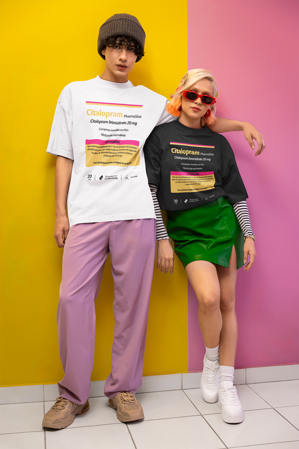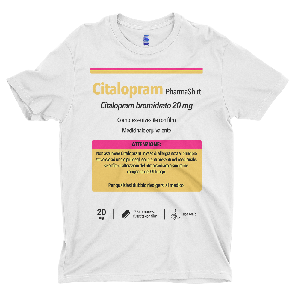 Questa t-shirt unisex, fresca e morbida al tatto è ispirata al farmaco “Citalopram”. La stampa DTG (Direct-to-Garnment) di alta qualità garantisce altissima tenuta nel tempo, saldando i colori nel tessuto così da rimanere brillanti e duraturi anche dopo molti lavaggi in lavatrice. Ultima chicca: questo prodotto può essere personalizzato aggiungendo una scritta a piacere sulle spalle.