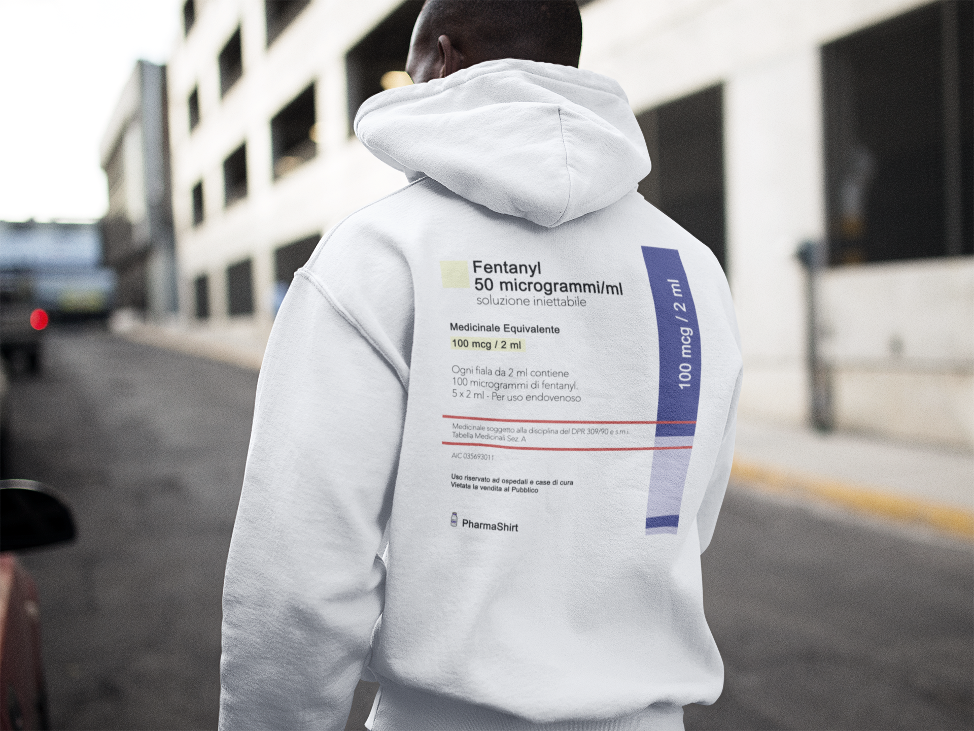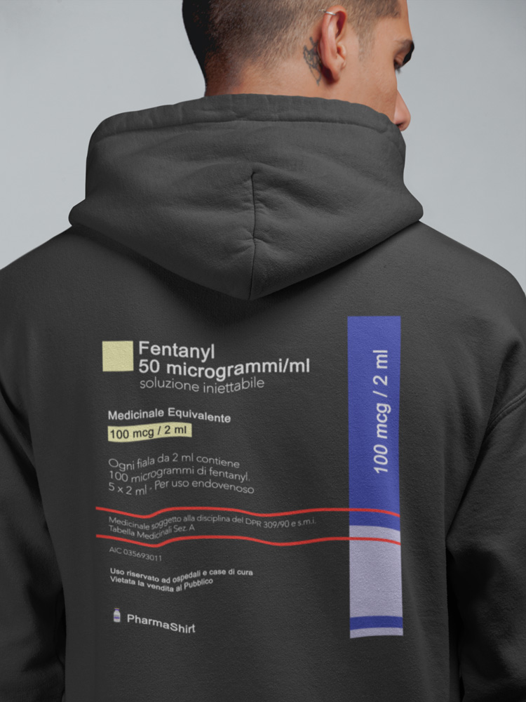 Questa hoodie unisex, con zip e cappuccio, calda e morbida al tatto è ispirata al farmaco “Fentanyl”. La stampa è posta dorsalmente ed è di ottima qualità, i colori rimarranno brillanti e duraturi anche dopo molti lavaggi in lavatrice. Ultima chicca: puoi personalizzare questo prodotto aggiungendo una scritta frontalmente, lato cuore, di circa 10 cm.