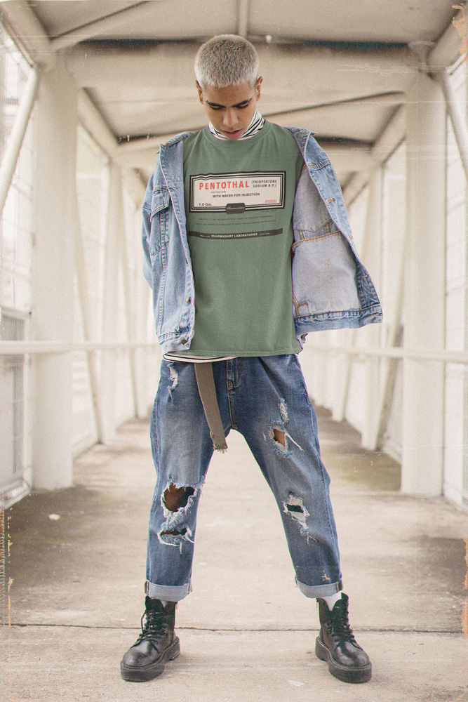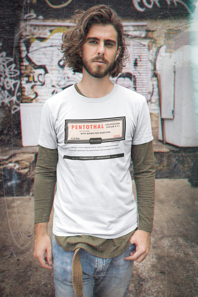 Questa t-shirt unisex, fresca e morbida al tatto è ispirata al Pentothal distribuito dalla Bayern a inizio ‘900. La stampa DTG (Direct-to-Garnment) di alta qualità garantisce altissima tenuta nel tempo, saldando i colori nel tessuto così da rimanere brillanti e duraturi anche dopo molti lavaggi in lavatrice. Ultima chicca: questo prodotto può essere personalizzato aggiungendo una scritta a piacere sulle spalle.