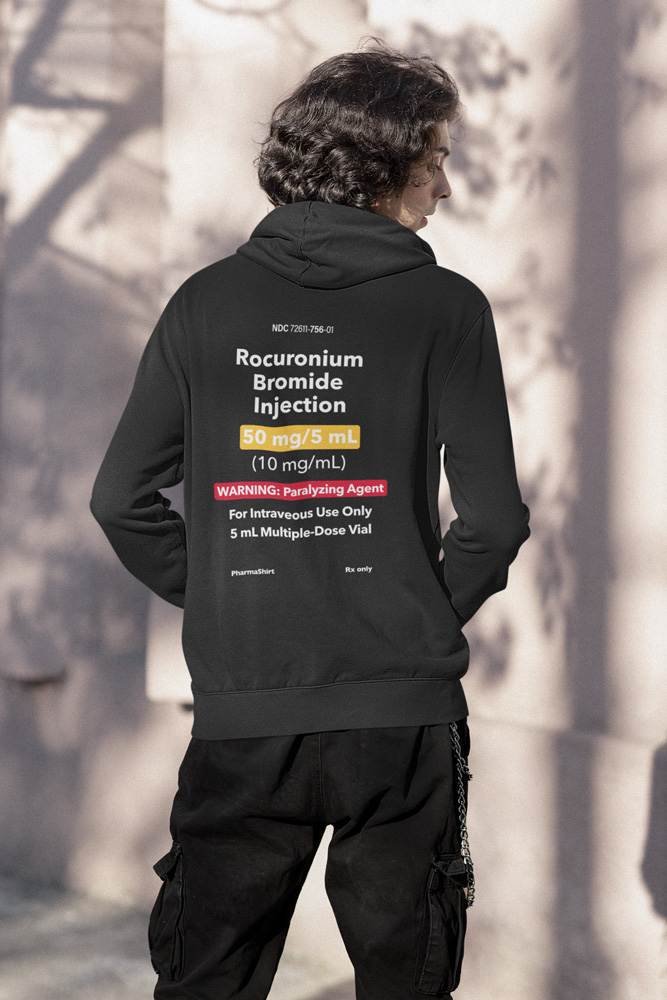 Questa hoodie unisex, con zip e cappuccio, calda e morbida al tatto รจ ispirata al farmaco “Rocuronio”. La stampa รจ posta dorsalmente ed รจ di ottima qualitร , i colori rimarranno brillanti e duraturi anche dopo molti lavaggi in lavatrice. Ultima chicca: puoi personalizzare questo prodotto aggiungendo una scritta frontalmente, lato cuore, di circa 10 cm.